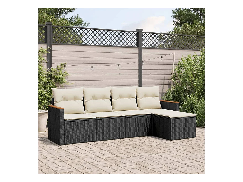 Salon de jardin 5 pcs avec coussins noir résine tressée FR57427