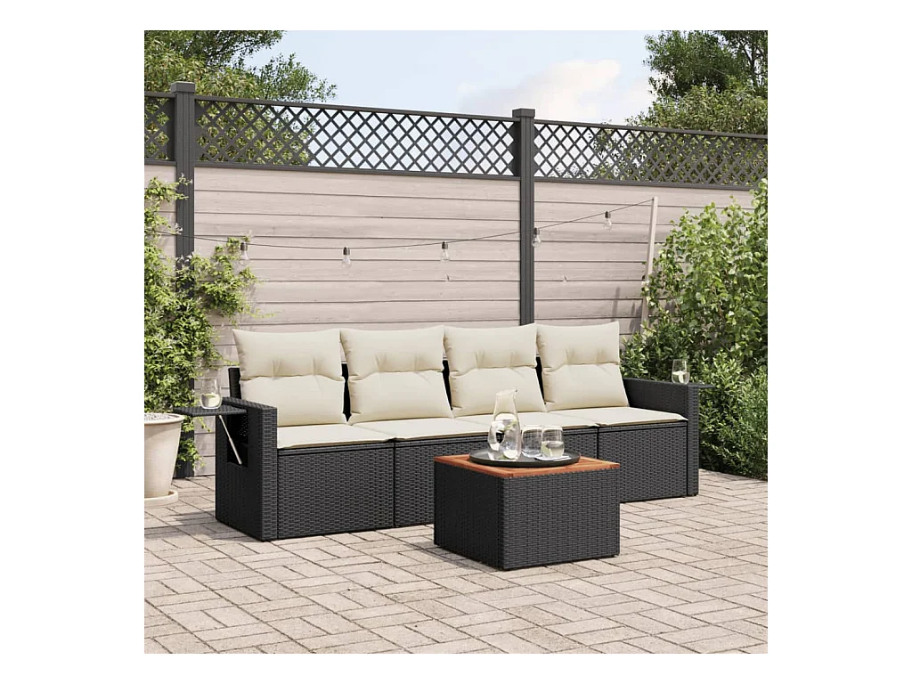 Salon de jardin 5 pcs avec coussins noir résine tressée FR84583