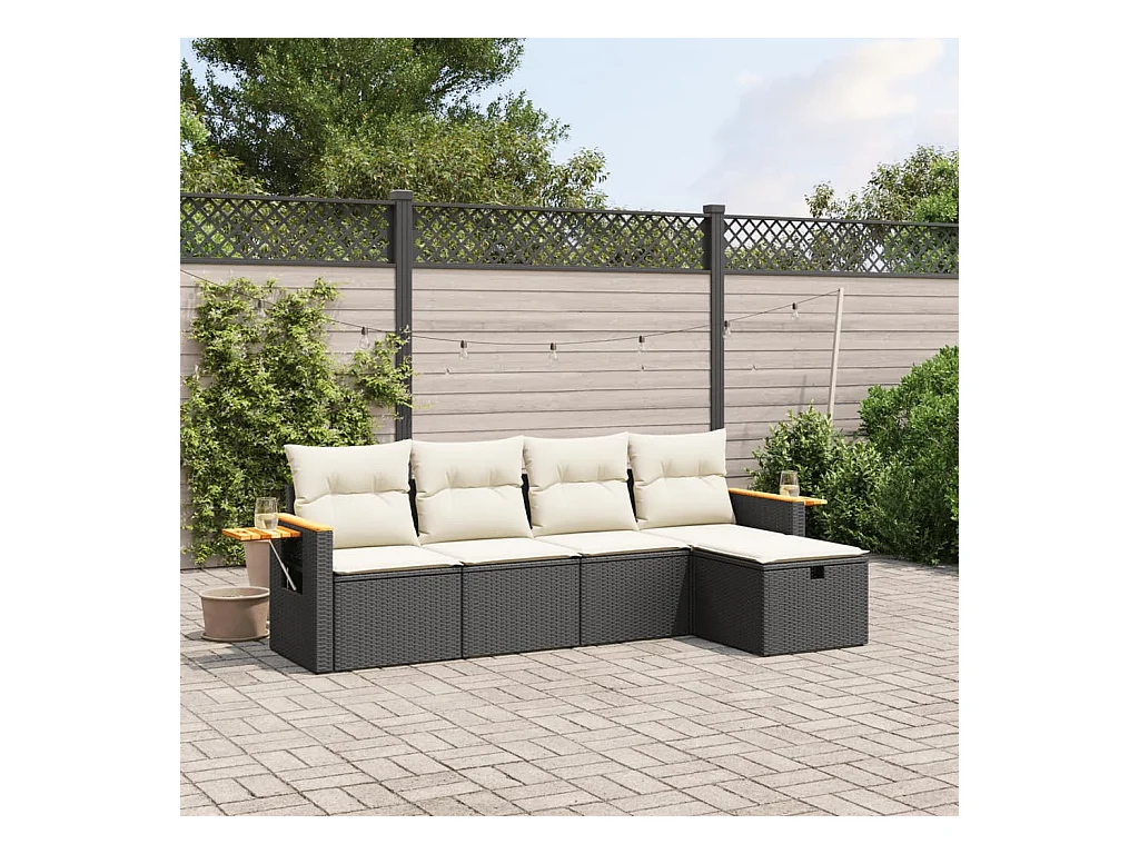 Salon de jardin 5 pcs avec coussins noir résine tressée FR84583