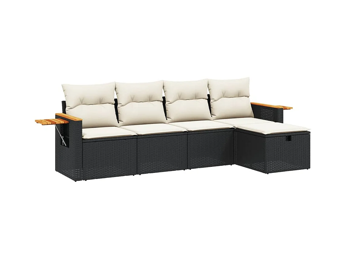 Salon de jardin 5 pcs avec coussins noir résine tressée FR25806