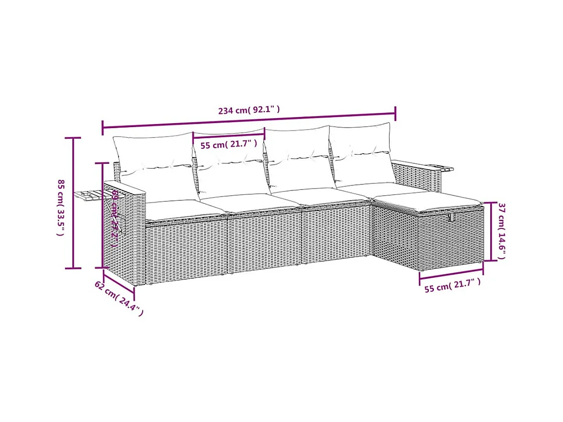 Salon complet de jardin Canapé 2 places et 2 fauteuils