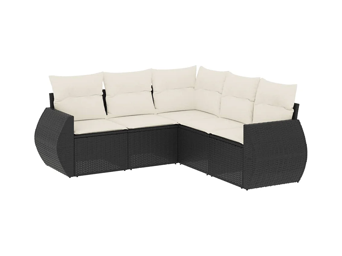 Salon de jardin 5 pcs avec coussins noir résine tressée FR79035