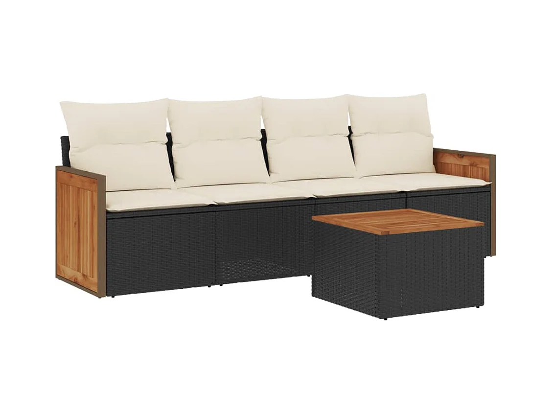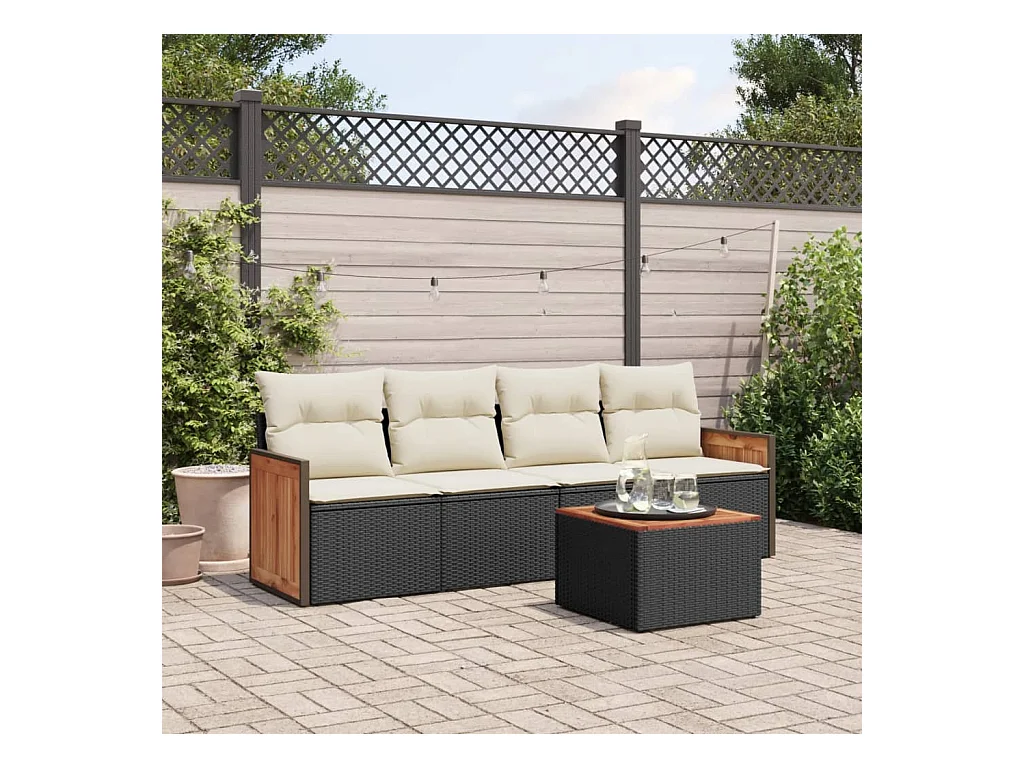 Salon de jardin 5 pcs avec coussins noir résine tressée FR84583