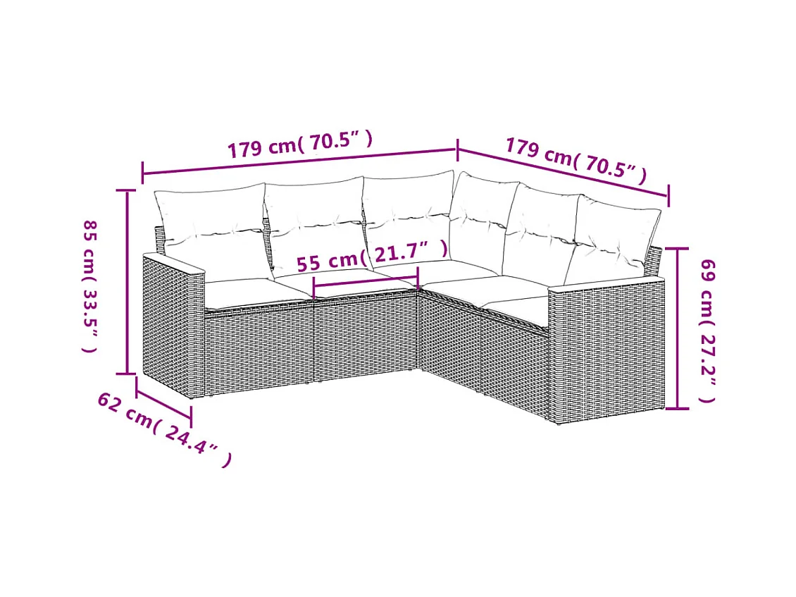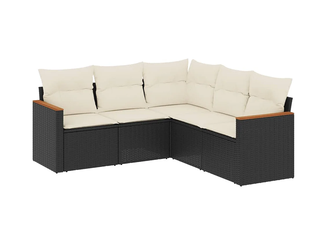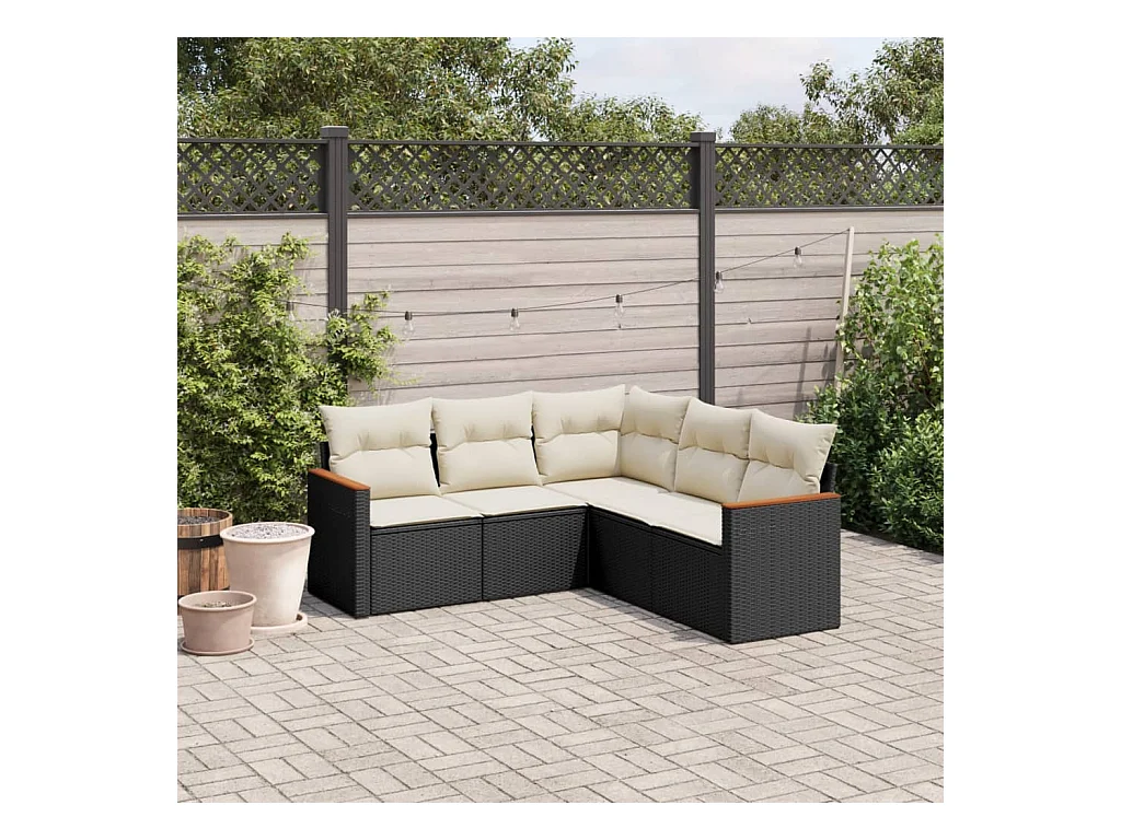 Salon de jardin 5 pcs avec coussins noir résine tressée FR82887
