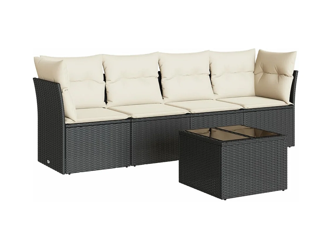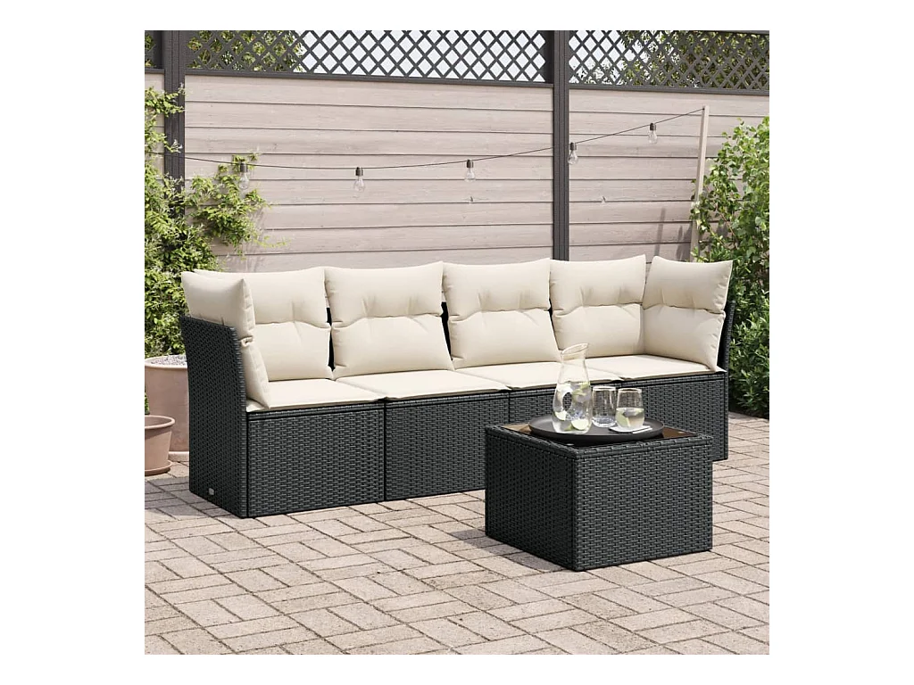 Salon de jardin 5 pcs avec coussins noir résine tressée BE91591