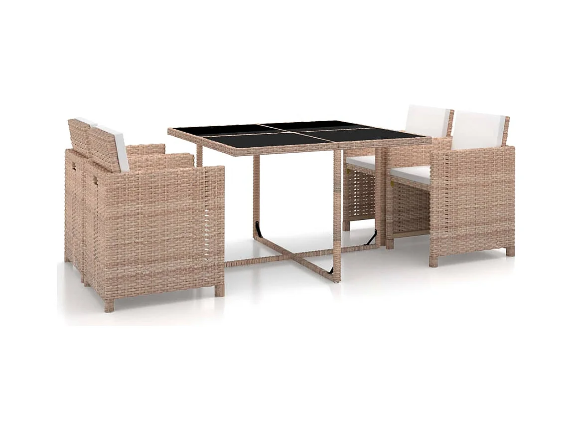 Ensemble à manger de jardin et coussins 5 pcs Poly rotin Beige