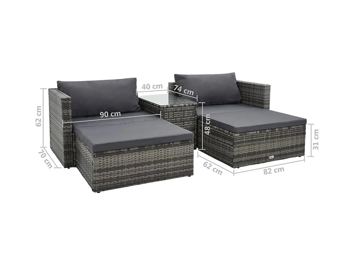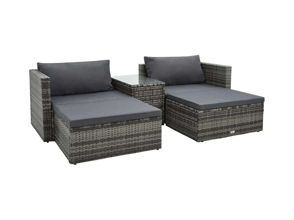Salon de jardin 5 pcs avec coussins Résine tressée Gris