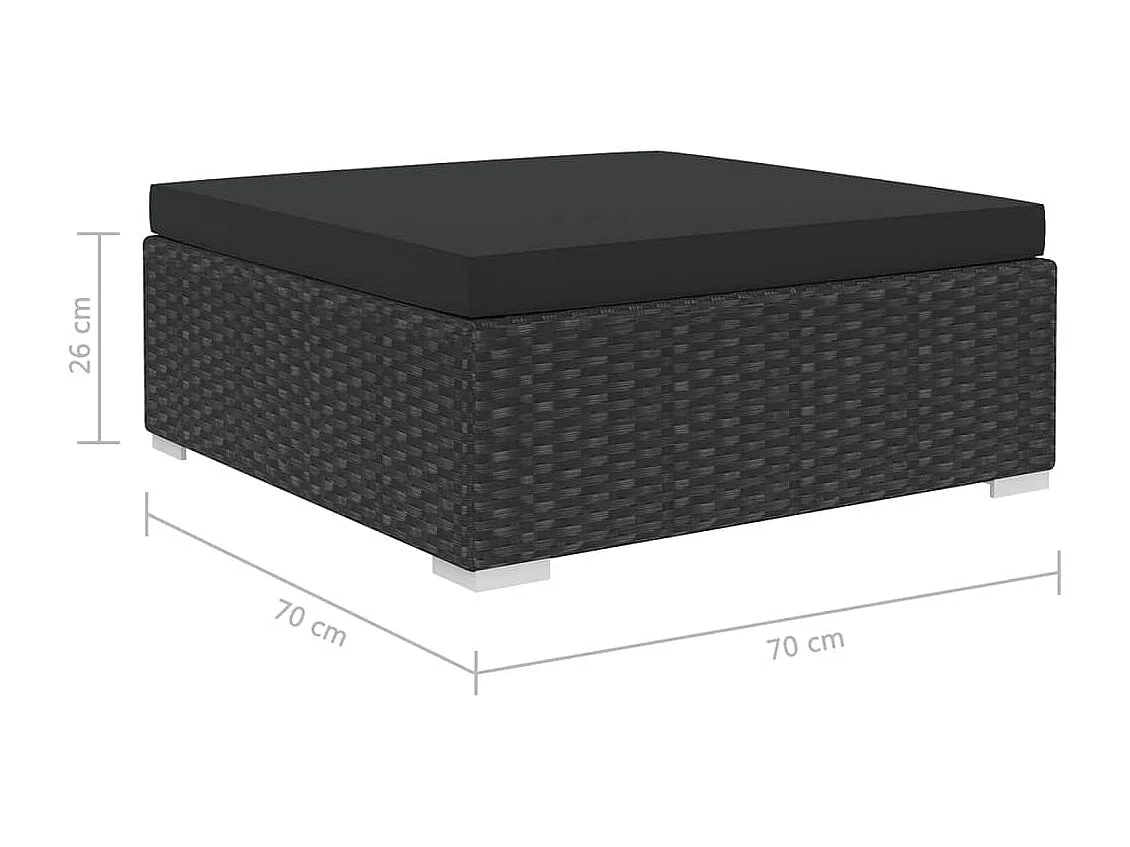 Salon de jardin encastrable 5 pcs et coussins Rotin Noir