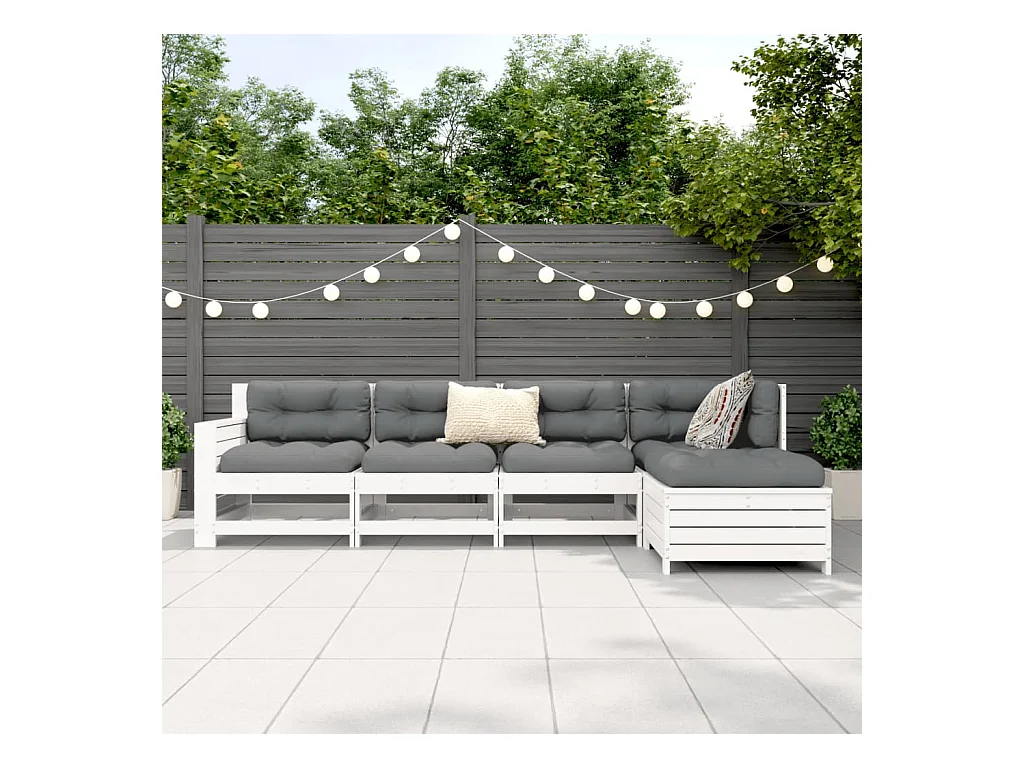 Salon de jardin 6 pcs Blanc Bois de pin massif