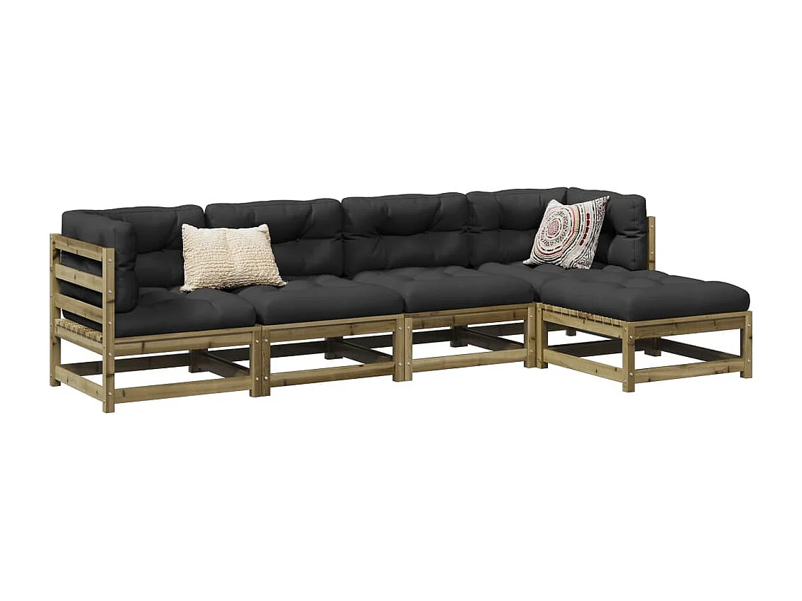 Salon de jardin 5 pcs avec coussins bois de pin massif BE25909