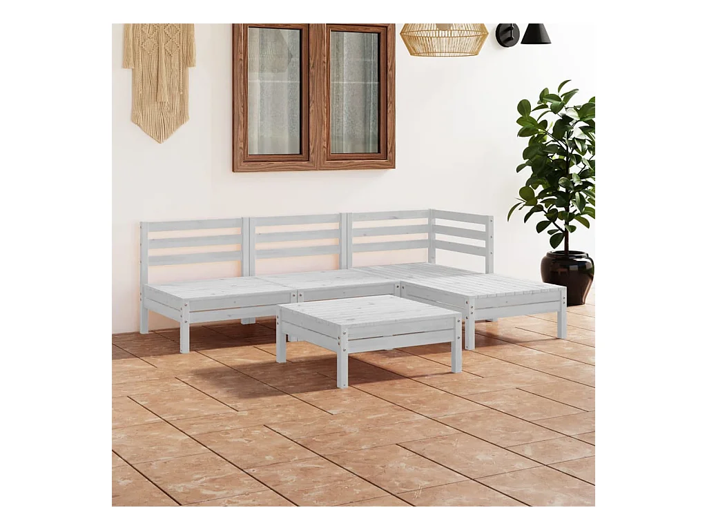 Salon de jardin 5 pcs blanc bois massif de pin FR10716