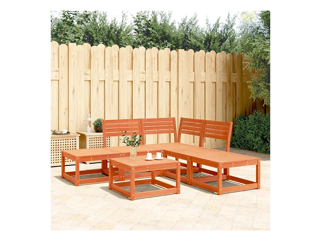 Salon de jardin 6 pcs avec coussins cire marron bois pin massif