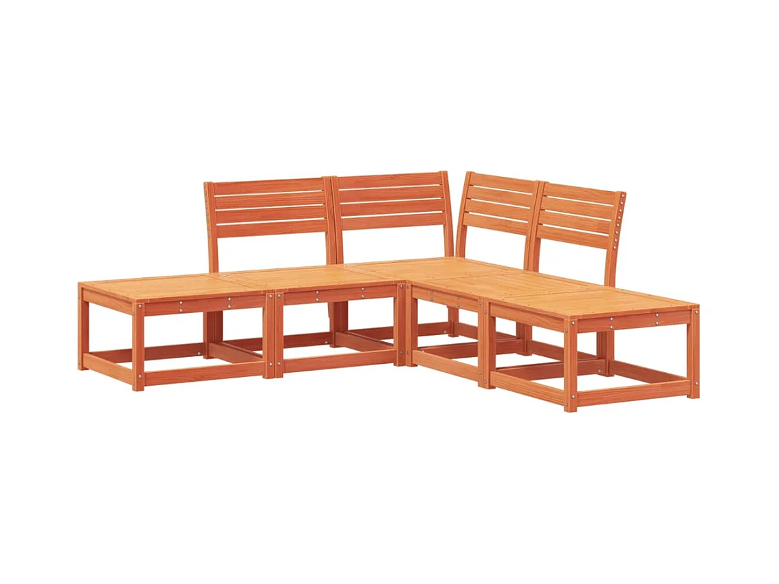 Salon de jardin 5 pcs cire marron bois de pin massif