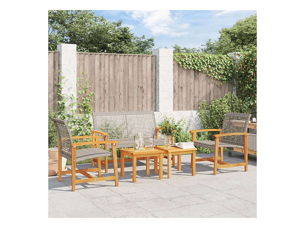 Salon de jardin 5 pcs gris résine tressée et bois d'acacia FR24153