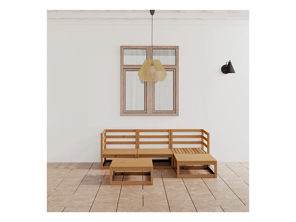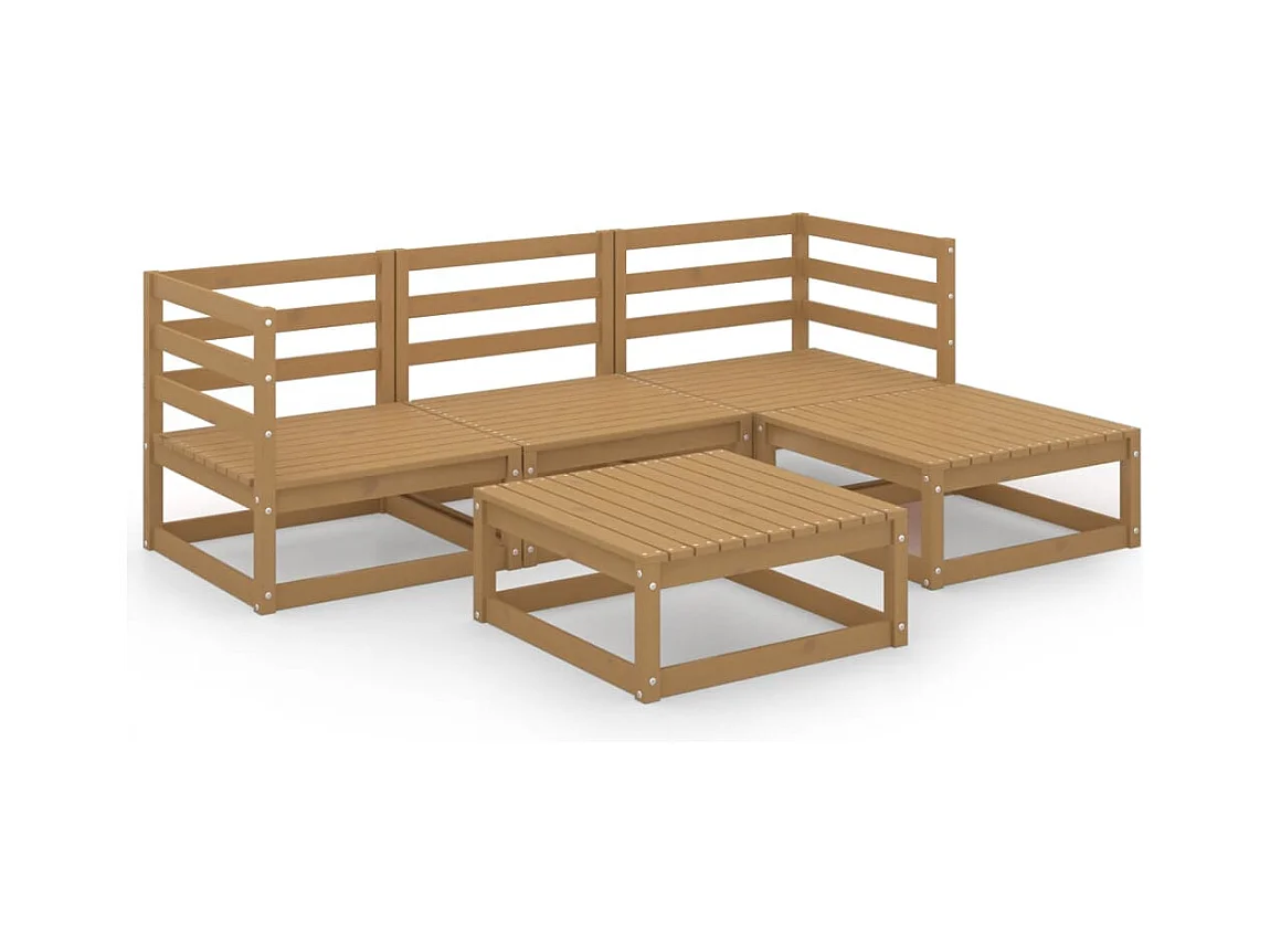 Salon de jardin 5 pcs marron miel bois de pin massif