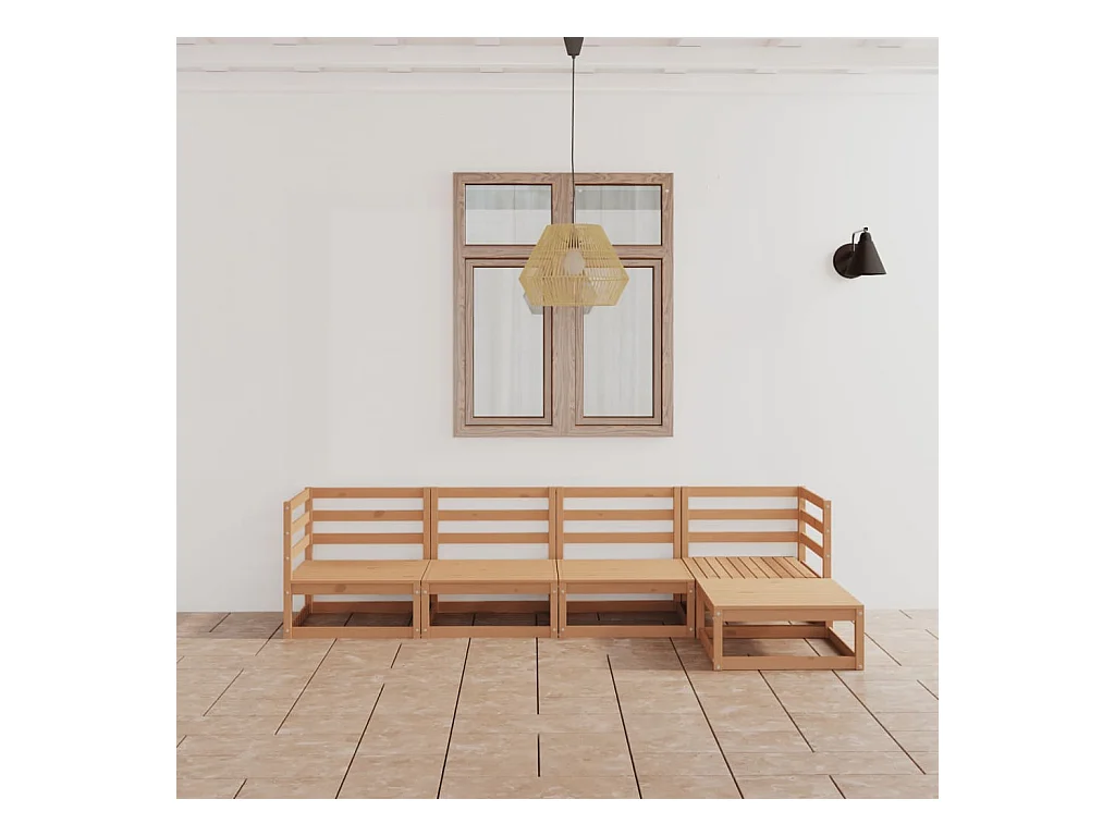 Salon de jardin 5 pcs marron miel bois de pin massif