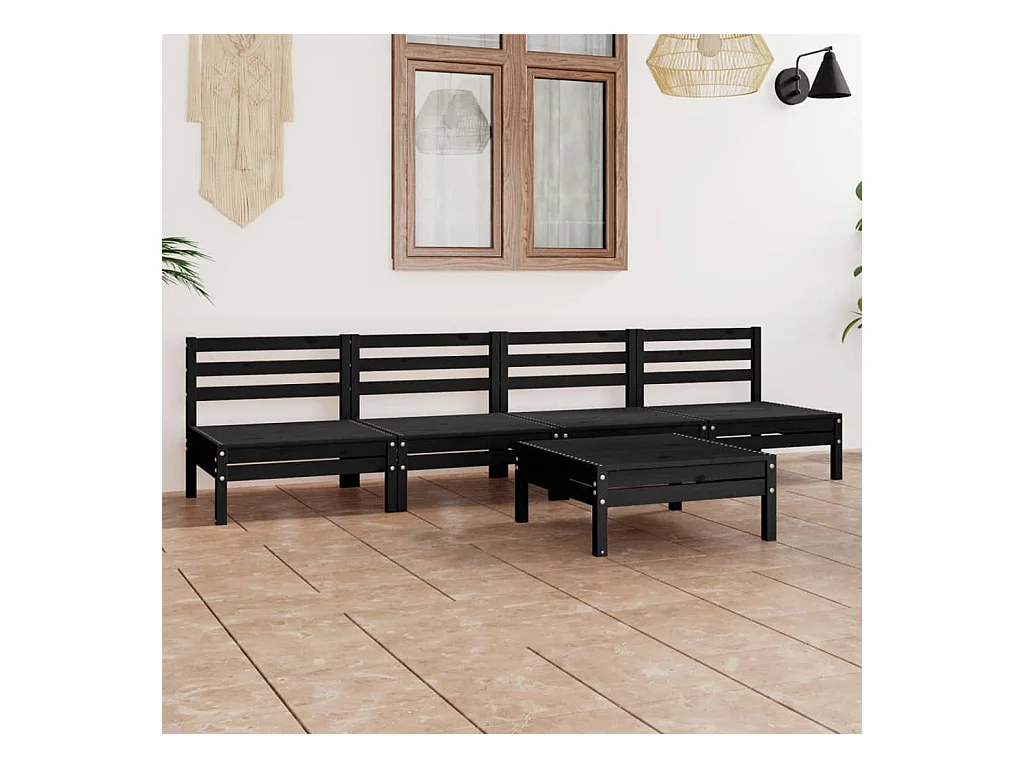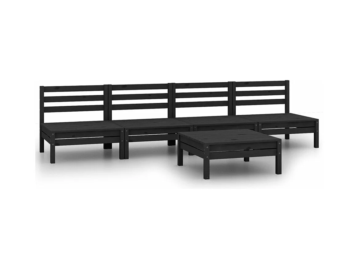 Salon de jardin 5 pcs noir bois de pin massif BE40186