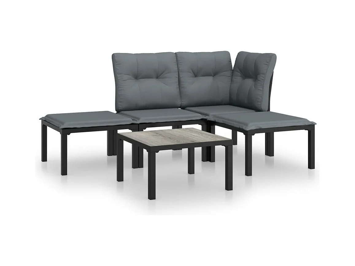 Salon de jardin 5 pcs noir et gris résine tressée BE84952