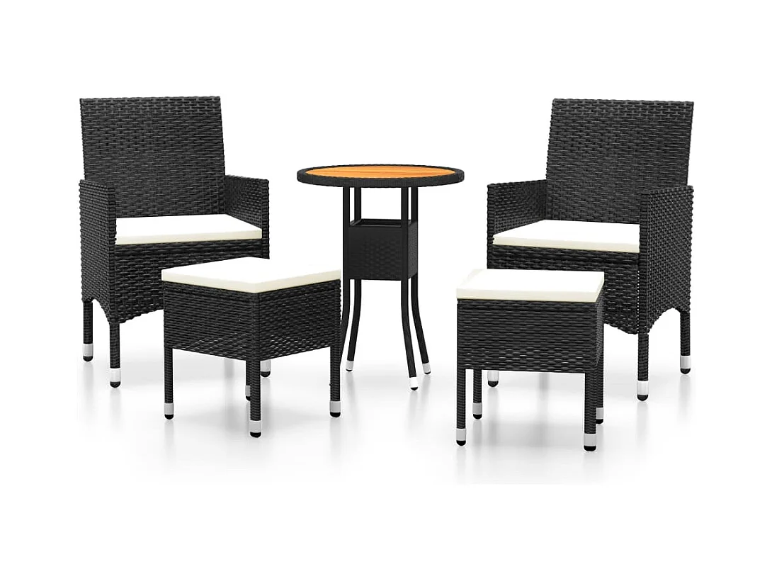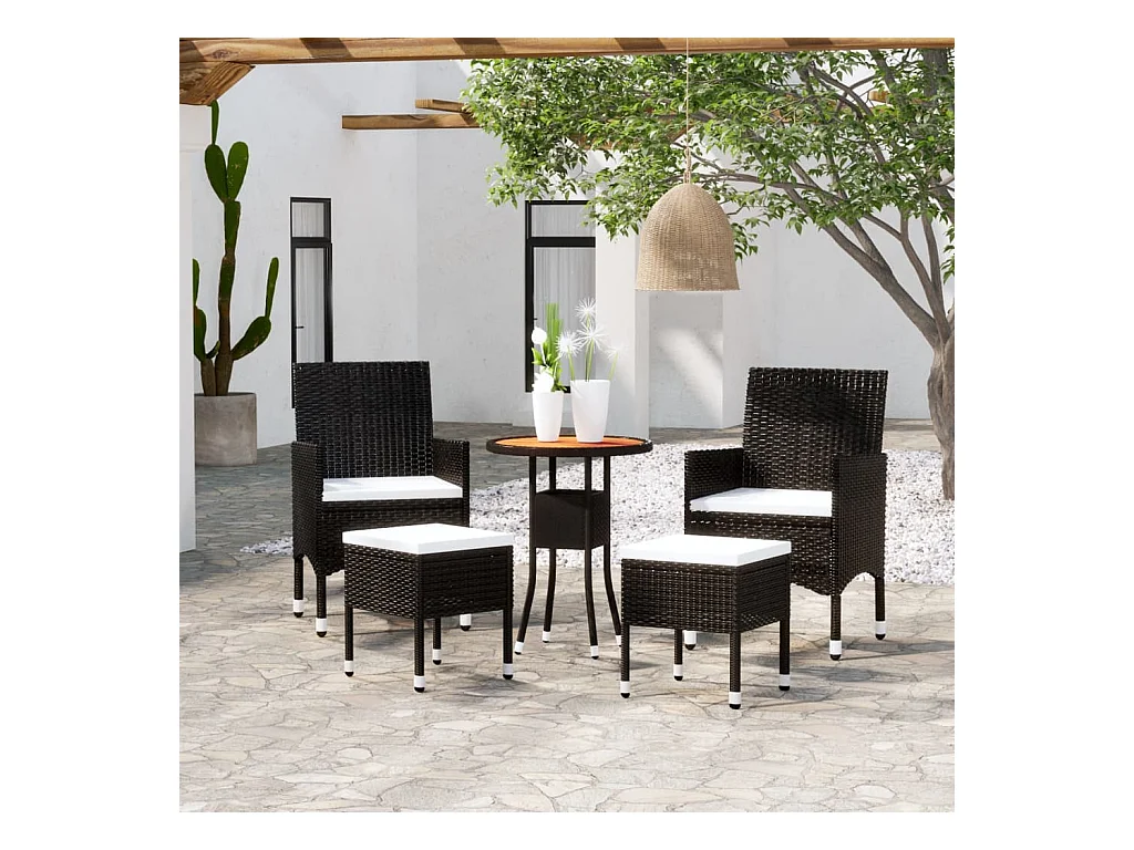 Ensemble de bar de jardin 5 pcs noir bois massif acacia rotin