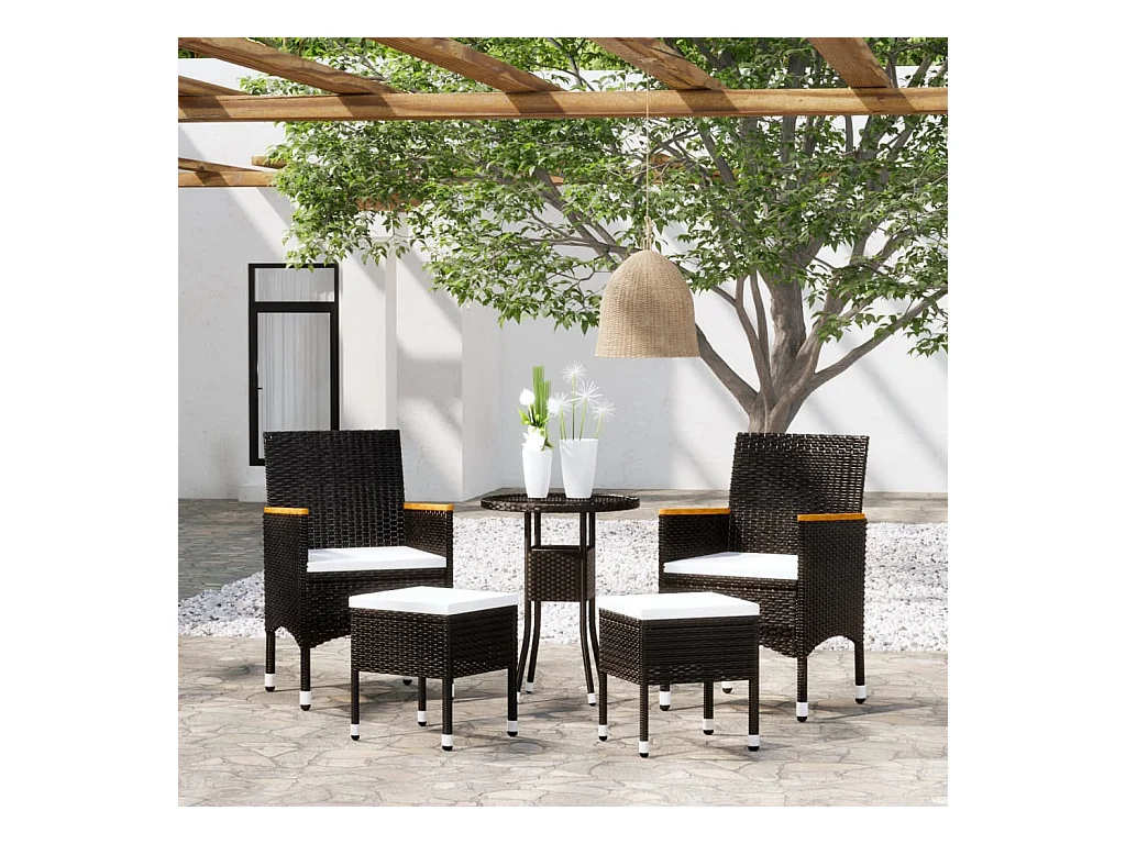 Ensemble de bar de jardin 5 pcs noir bois massif acacia rotin