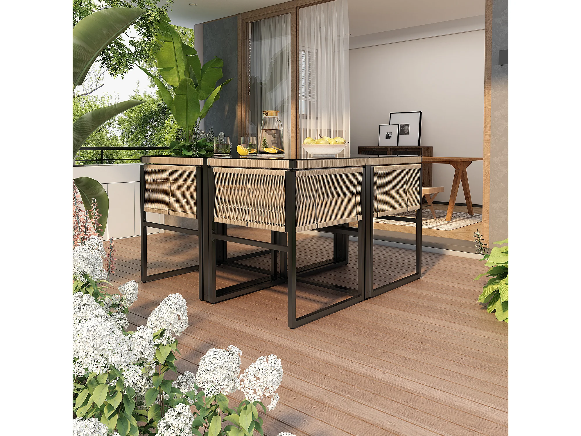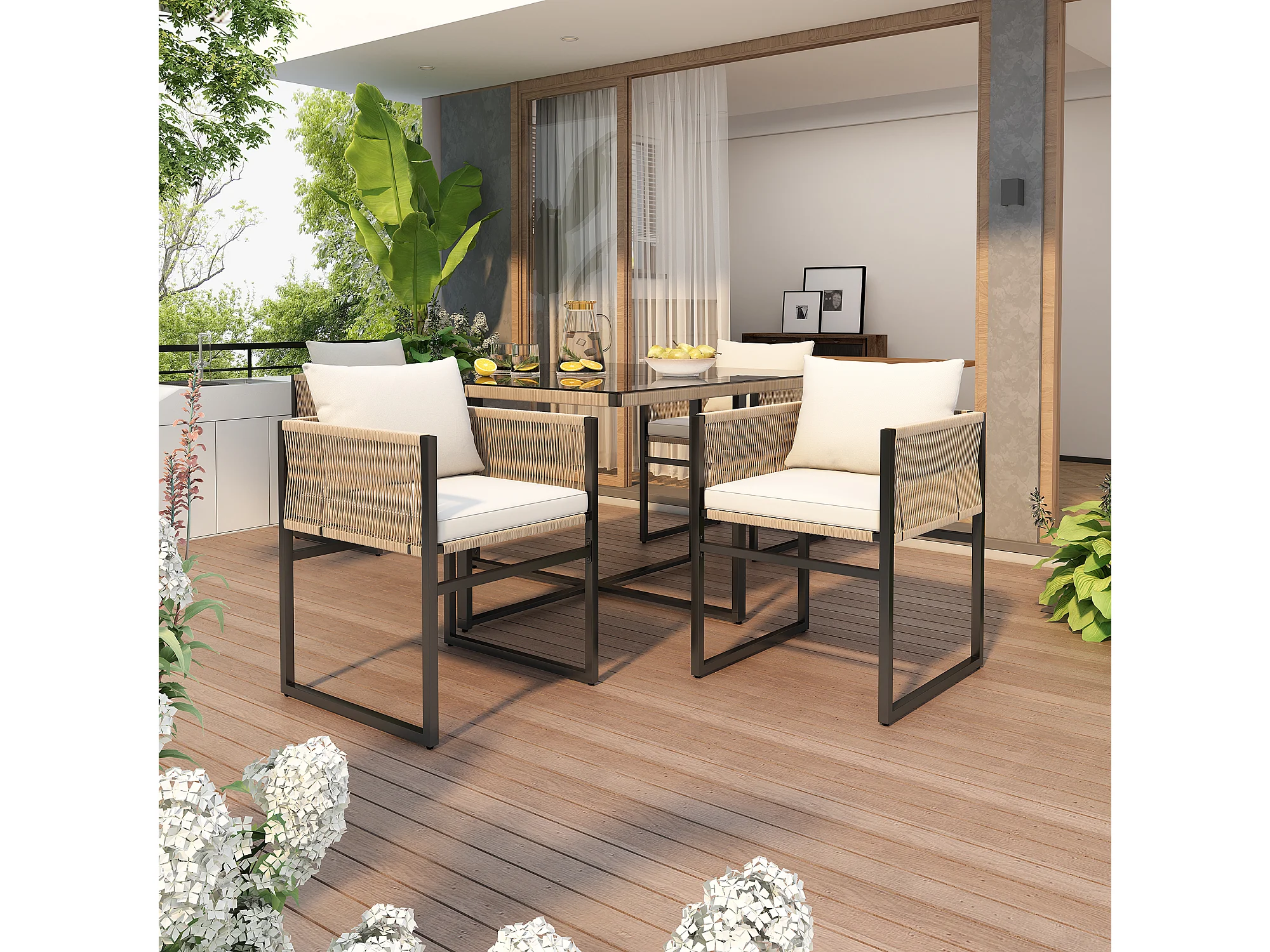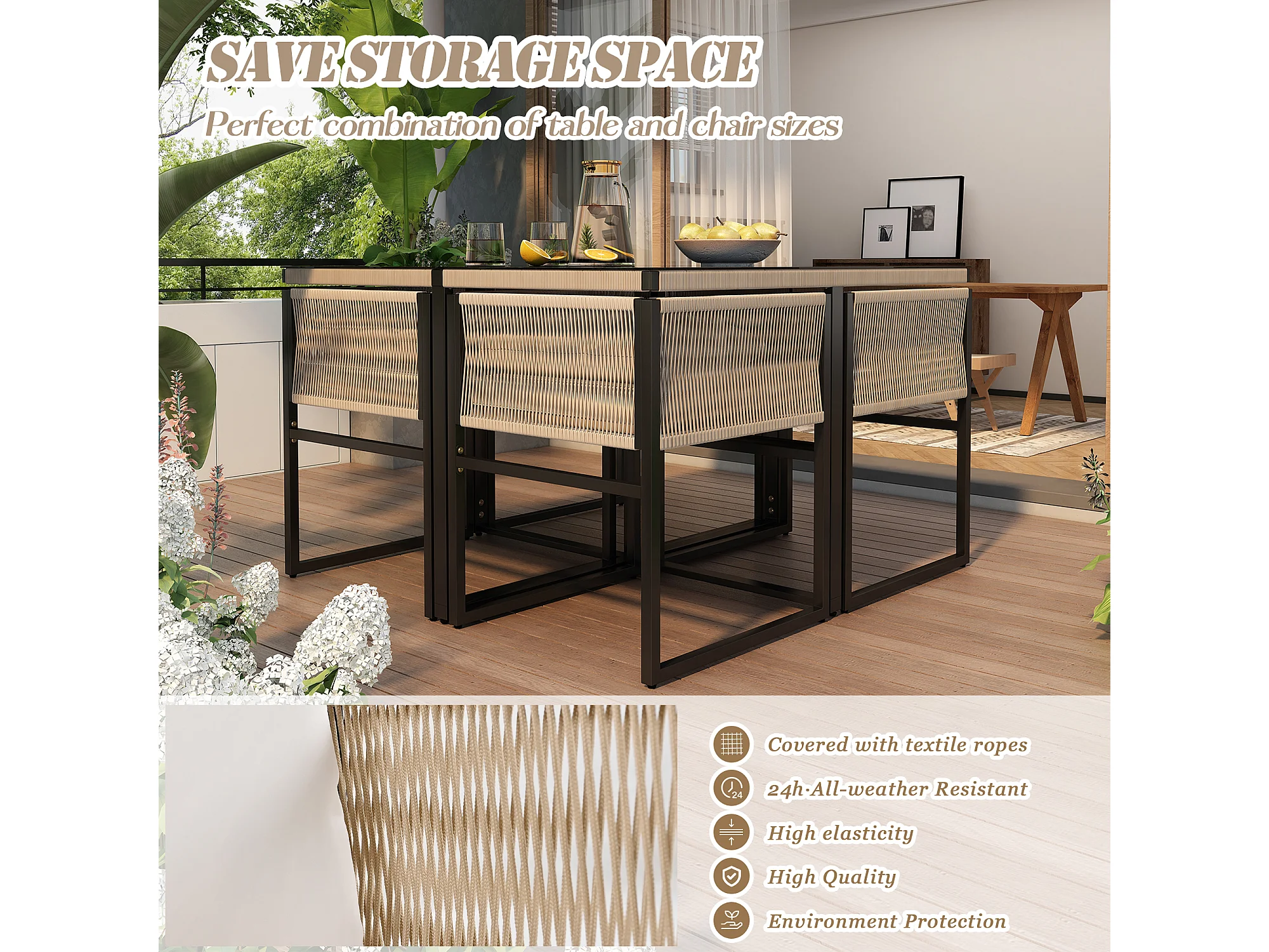 Salon de jardin 5 pièces avec 1 table, 4 chaises empilables, cadre en fer, tissu résistant aux intempéries, beige, (110x110x74 cm)