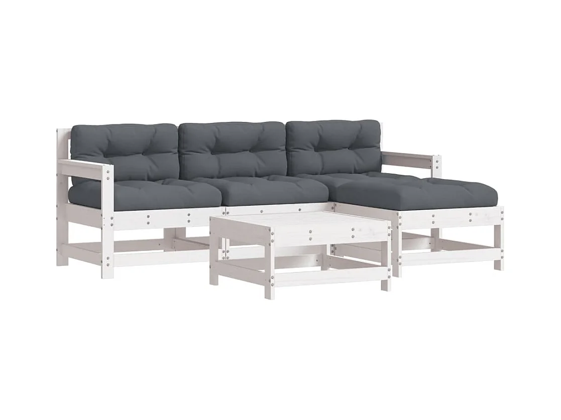 Salon de jardin 5 pièces avec coussins blanc bois massif