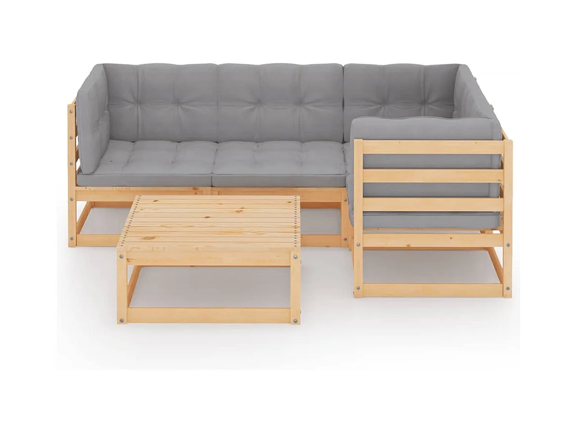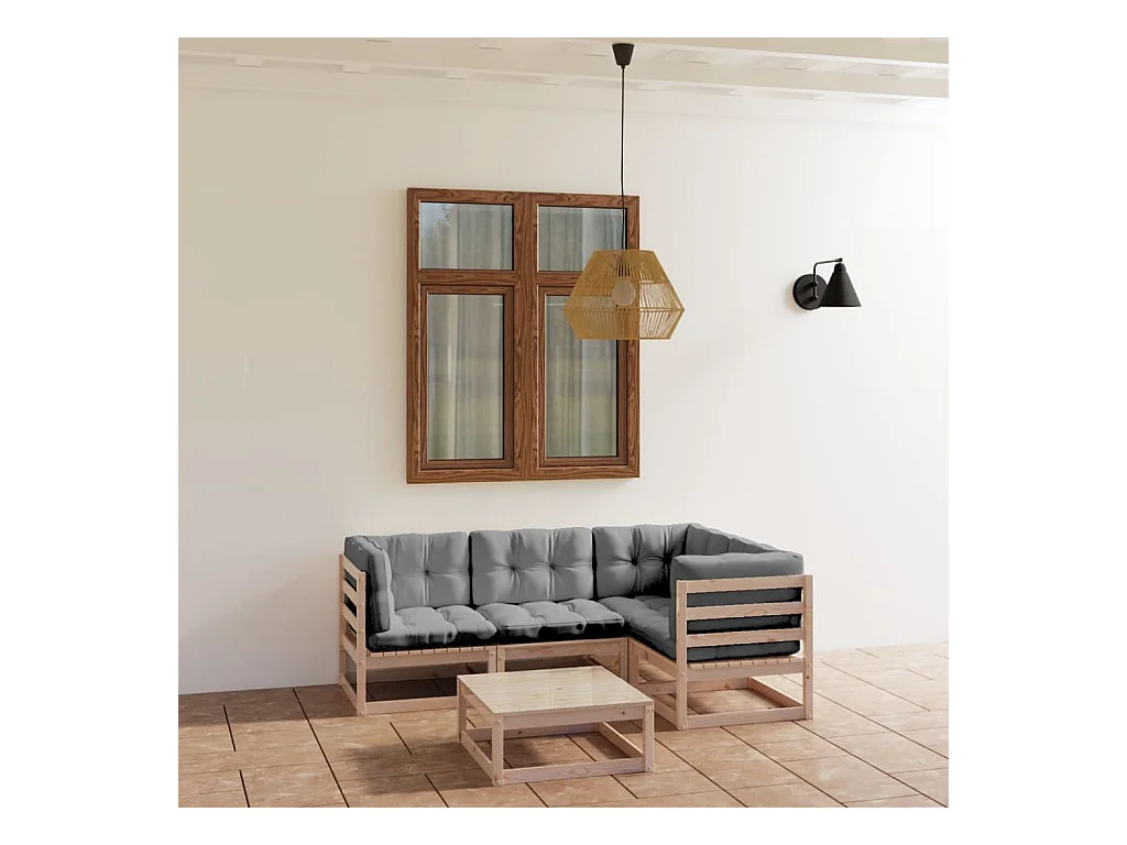 Salon de jardin 5 pièces avec coussins Bois de pin massif