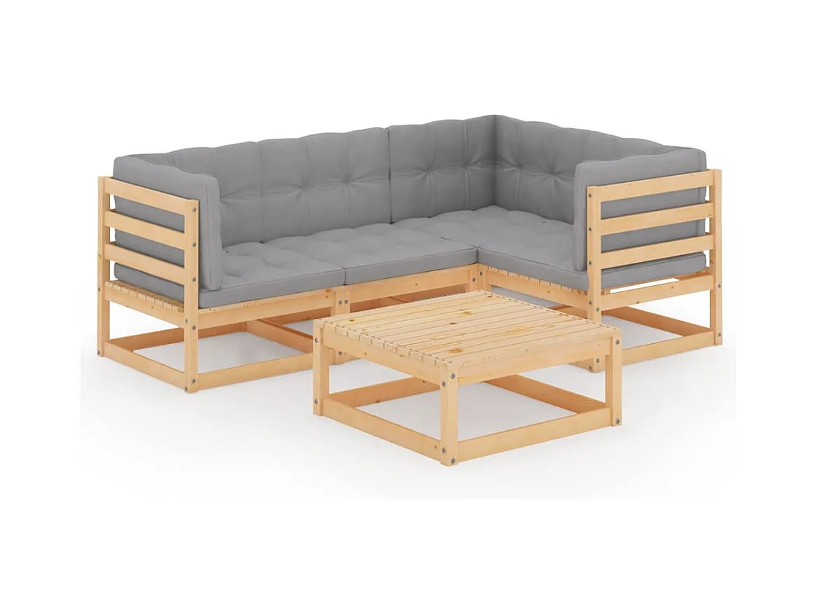 Salon de jardin 4 pcs avec coussins Bois de pin massif BE86291