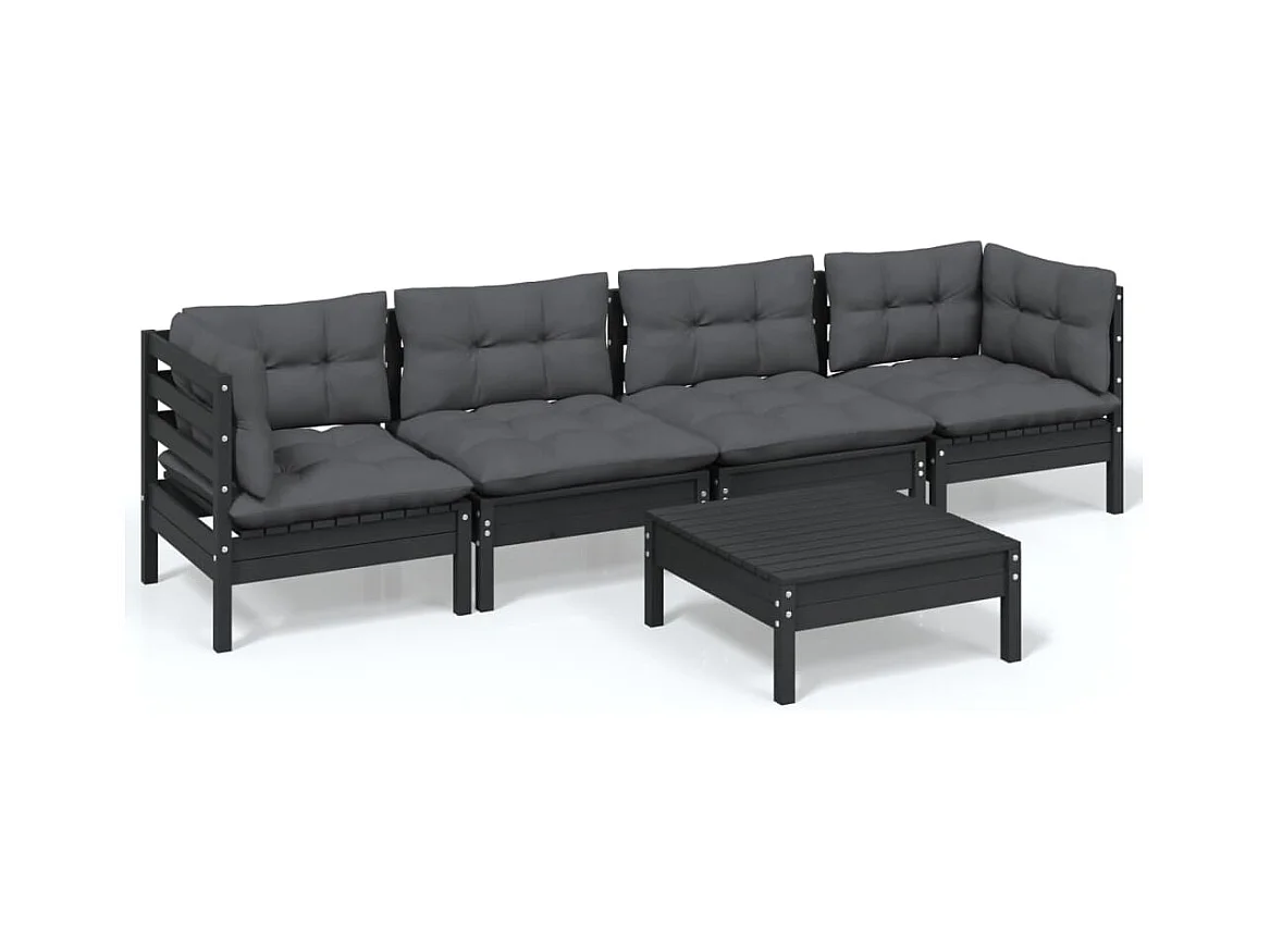 Salon de jardin 5 pièces avec coussins Noir Bois de pin