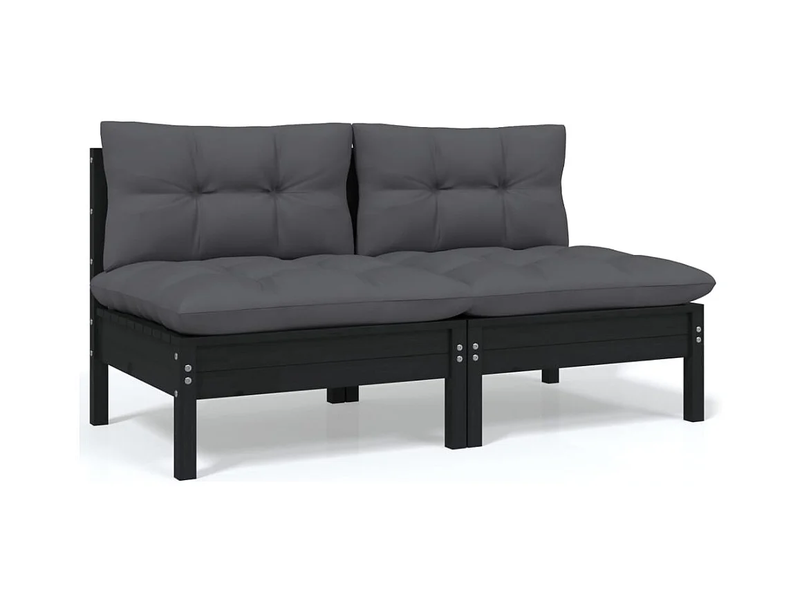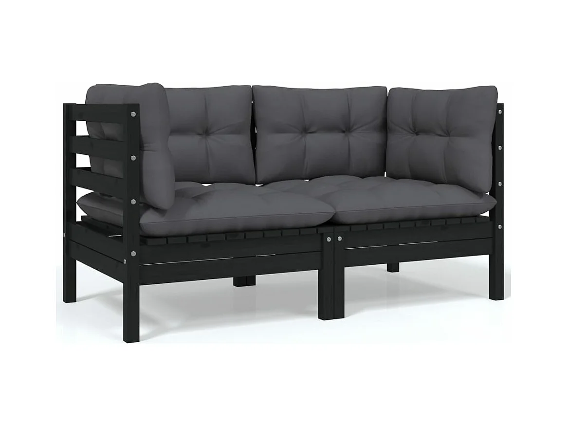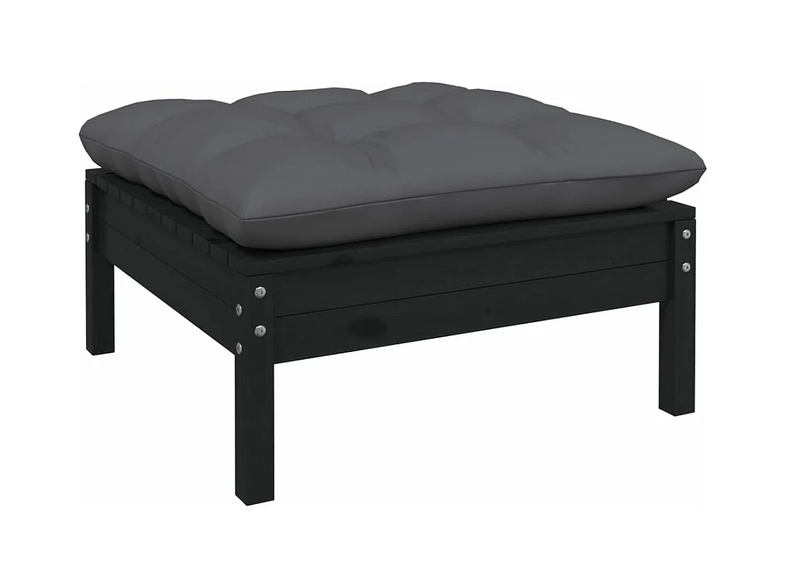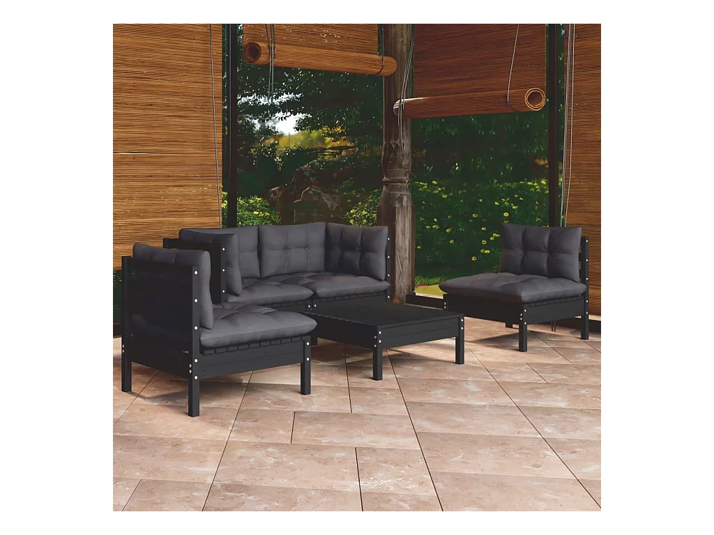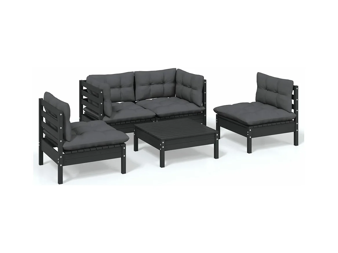 Salon de jardin 5 pièces avec coussins Noir Bois de pin