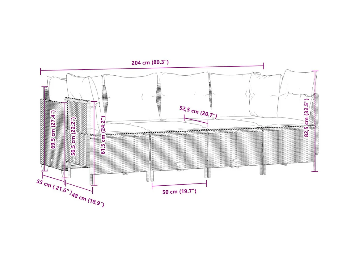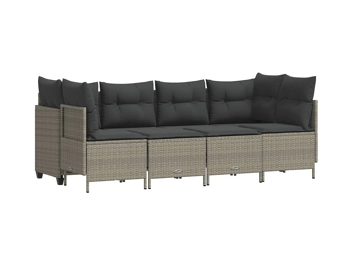 Salon de jardin 5 pièces avec coussins gris résine tressée