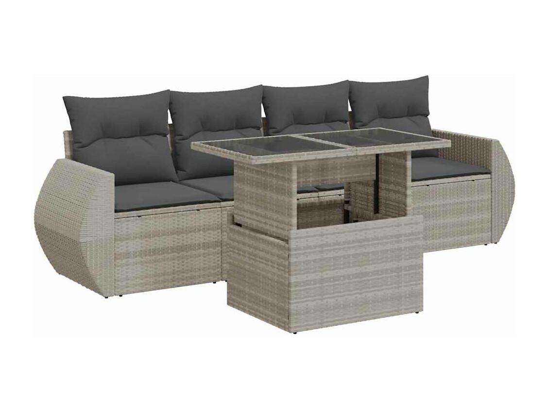 Salon de jardin 5 pièces avec coussins gris clair résine tressée