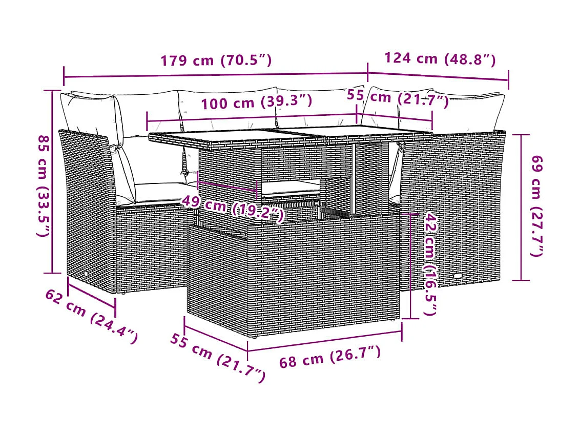 Salon complet de jardin Canapé 2 places et 2 fauteuils
