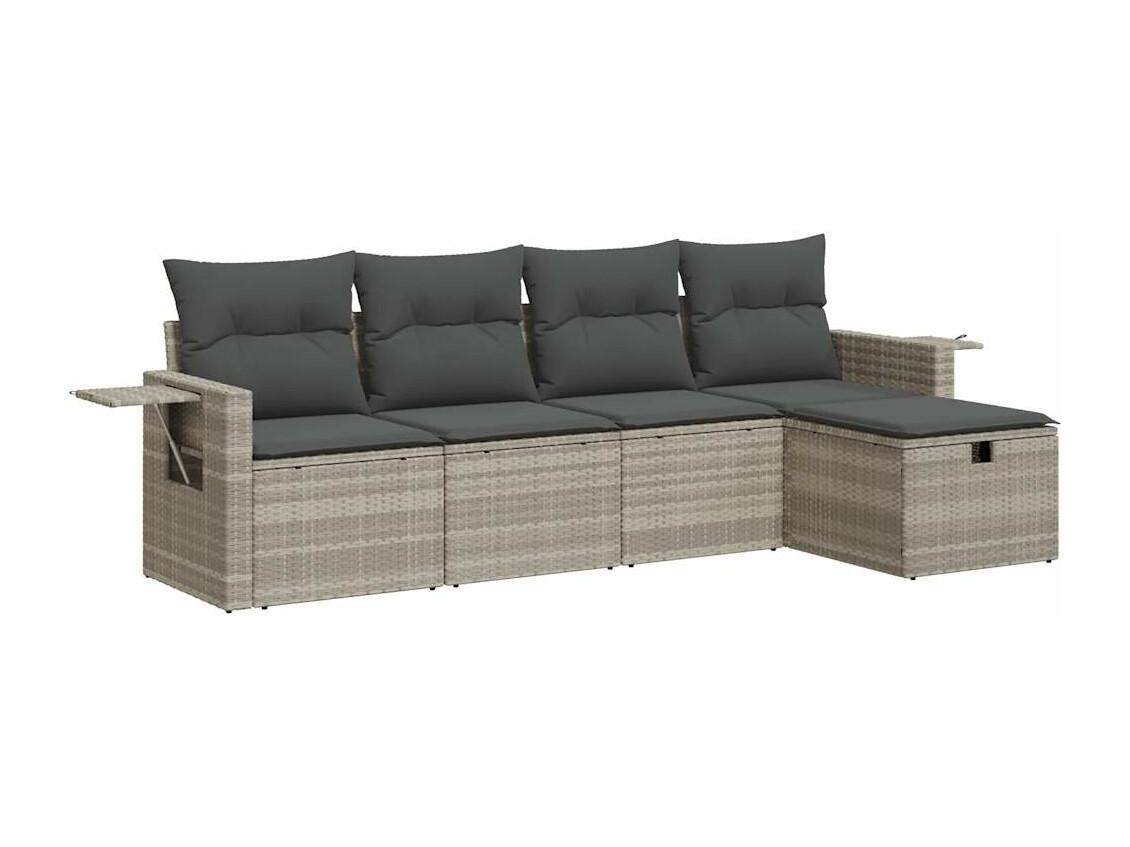 Salon de jardin 5 pièces avec coussins gris clair résine tressée