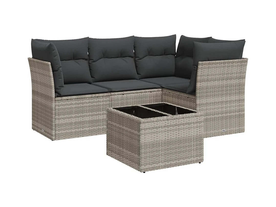 Salon de jardin 5 pièces avec coussins gris clair résine tressée