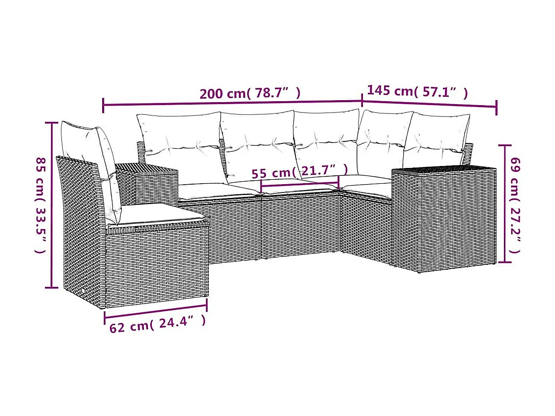 Salon complet de jardin Canapé 2 places et 2 fauteuils