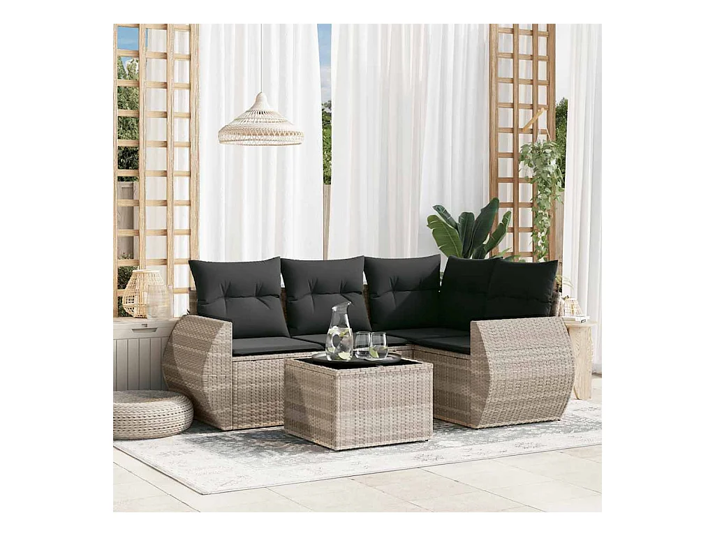 Salon de jardin 5 pièces avec coussins gris clair résine tressée