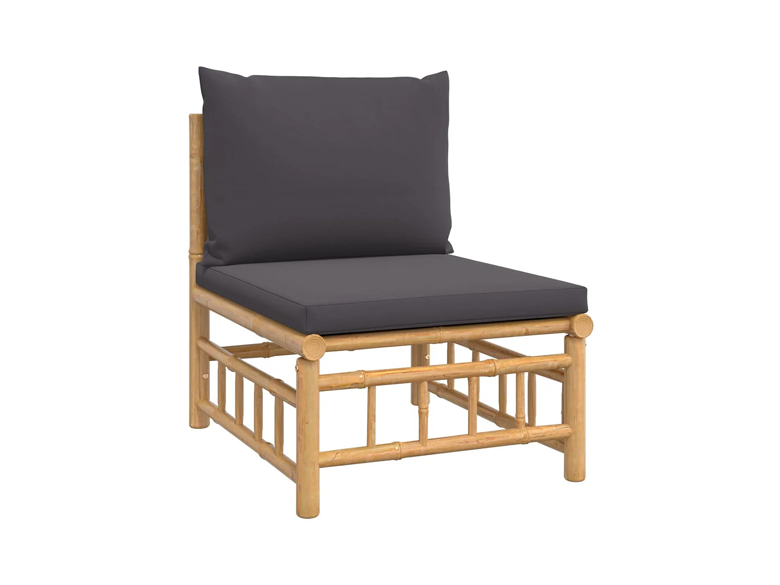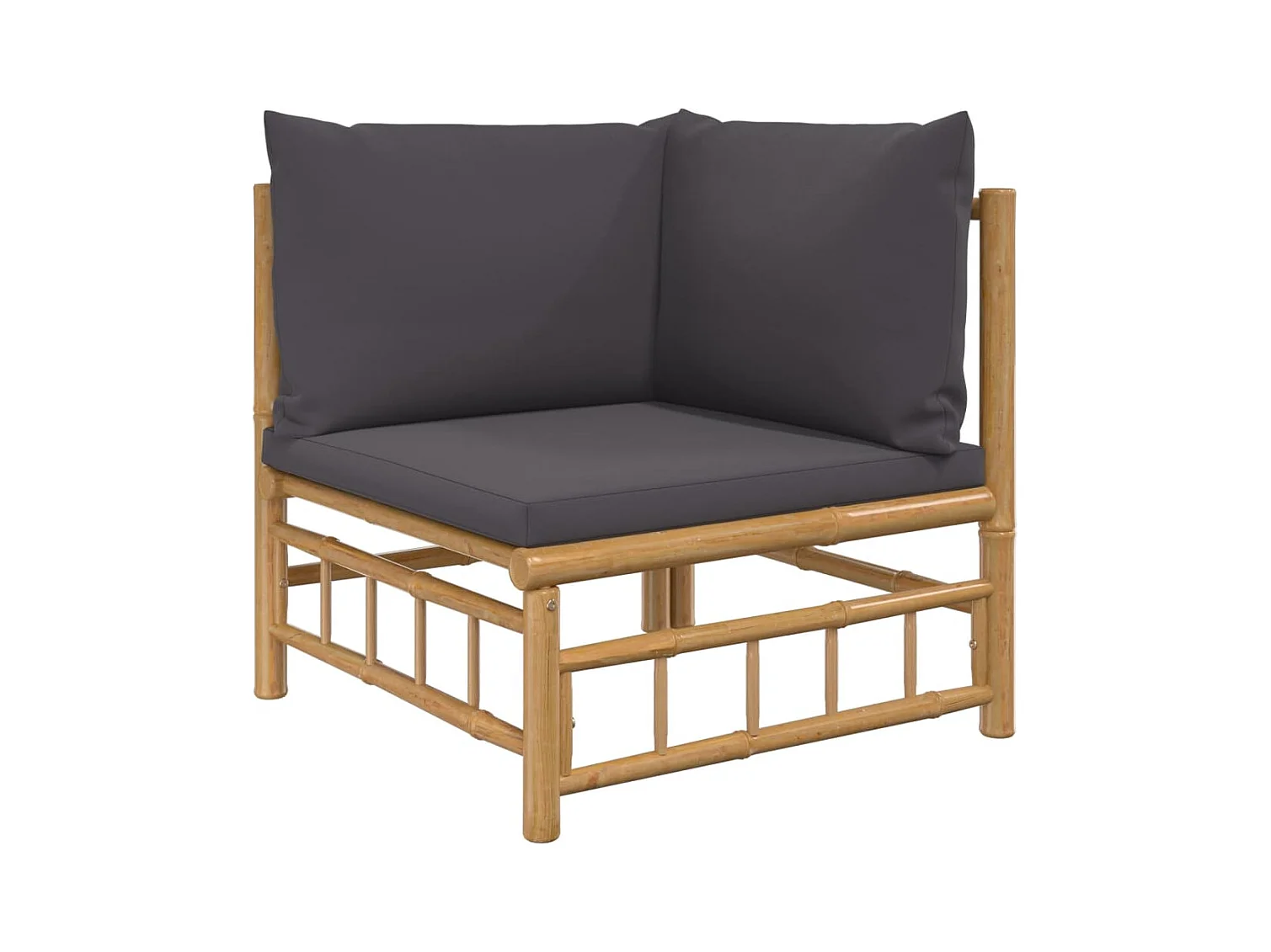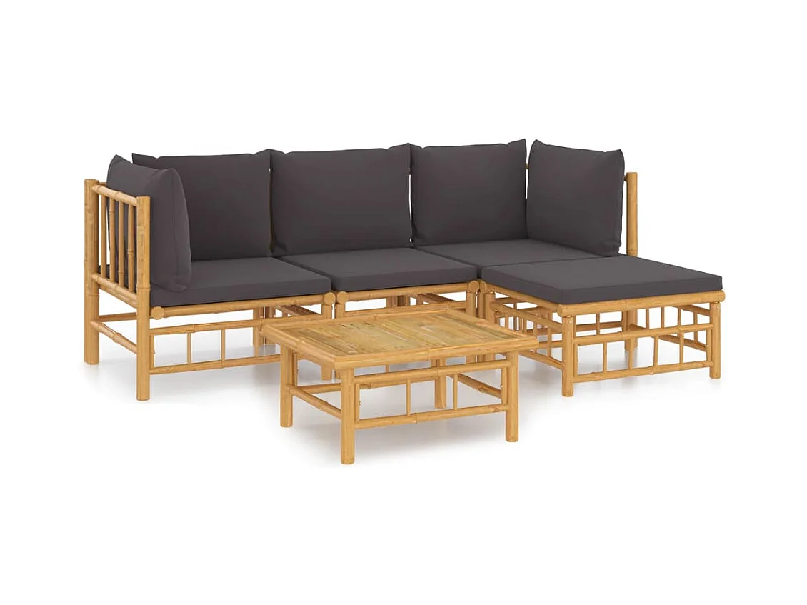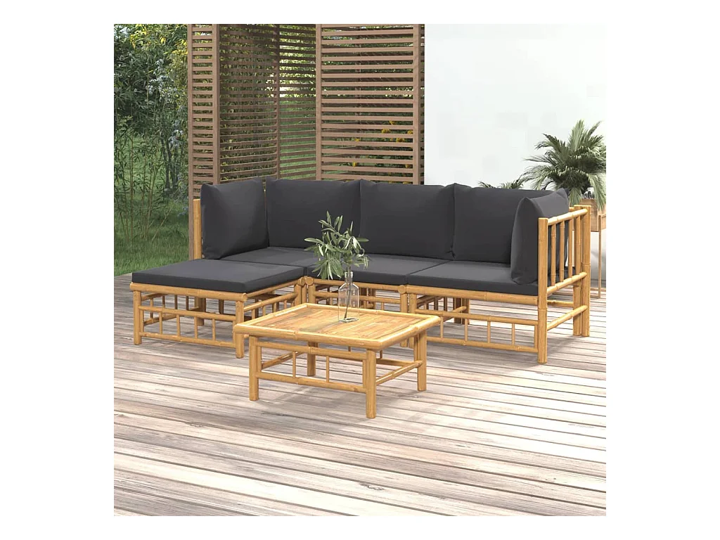 Salon de jardin 5 pièces avec coussins gris foncé bambou