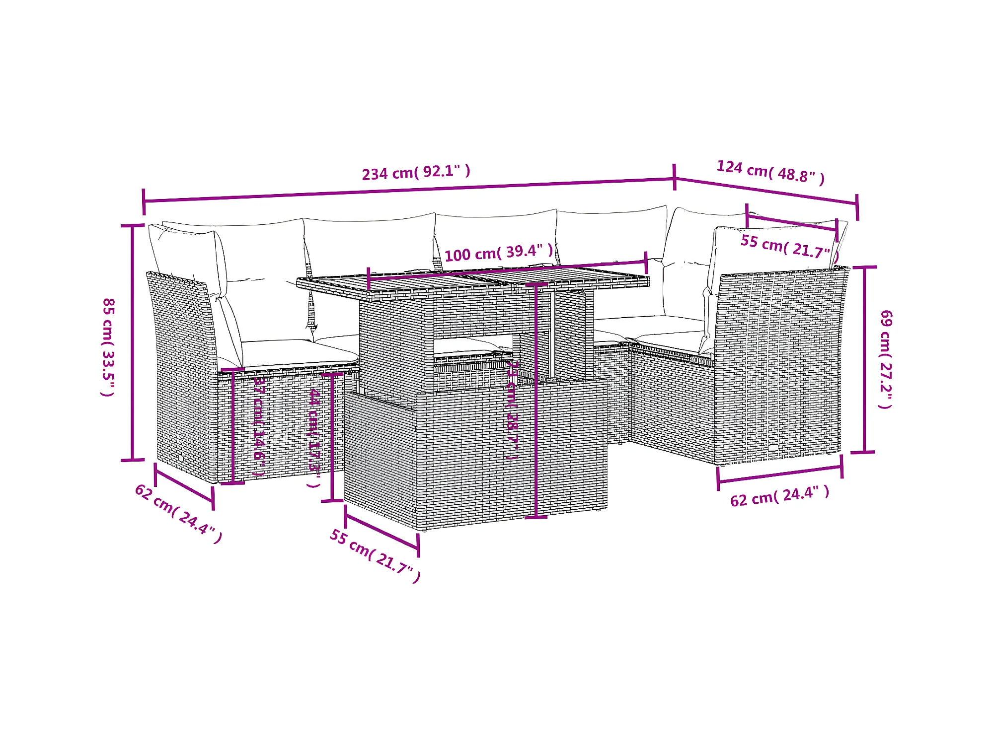 Salon complet de jardin Canapé 2 places et 2 fauteuils
