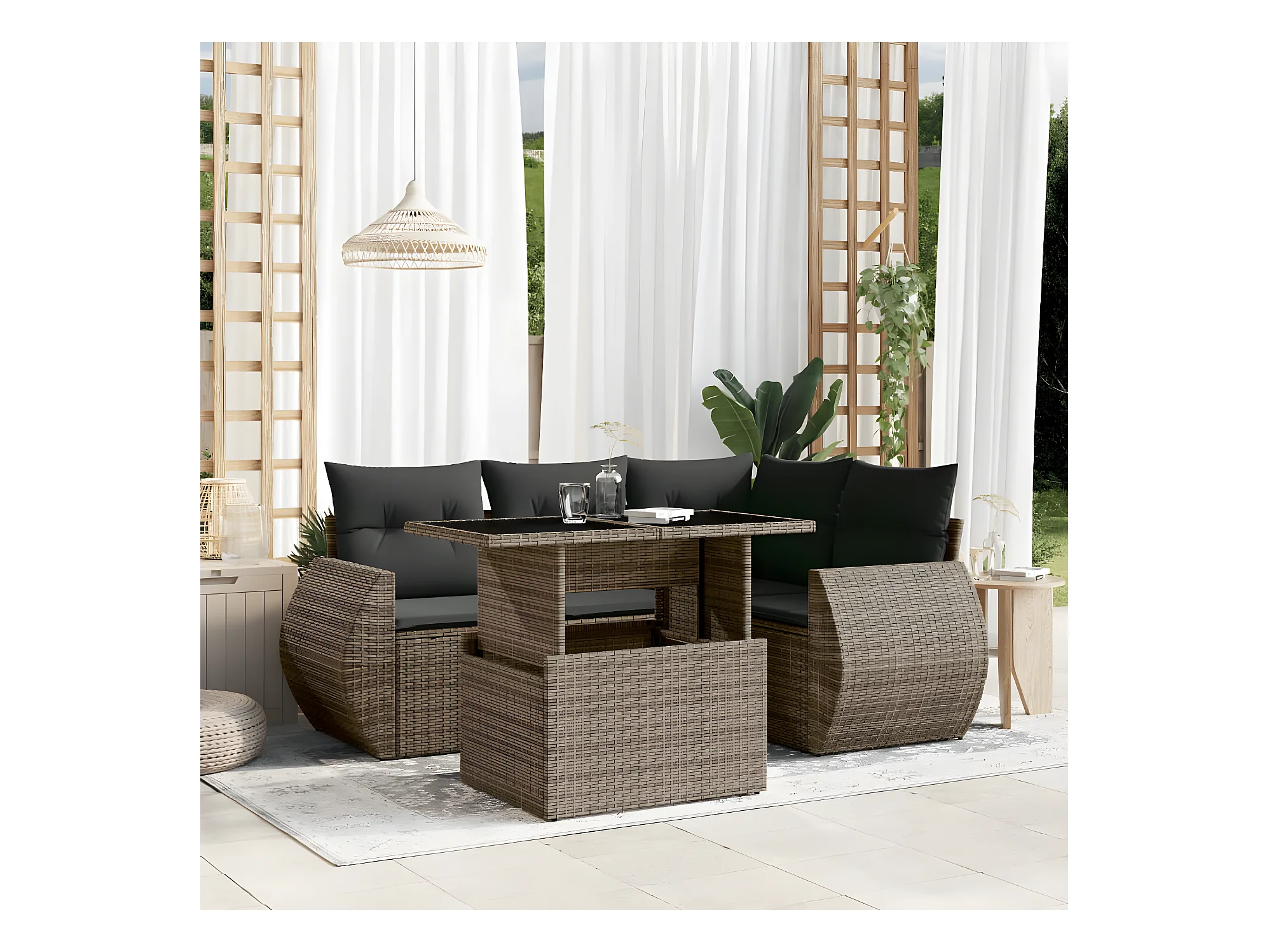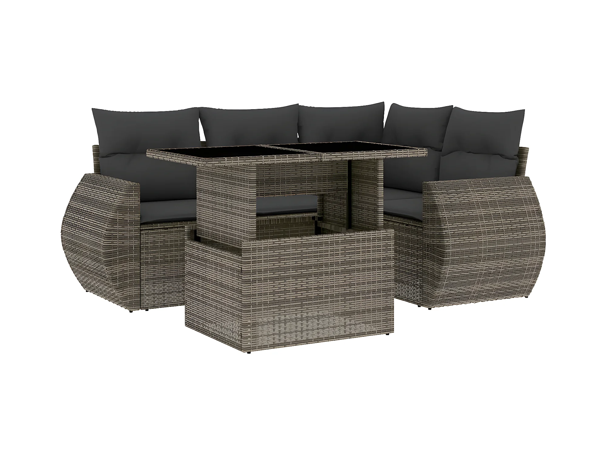 Salon de jardin 5 pièces avec coussins gris résine tressée