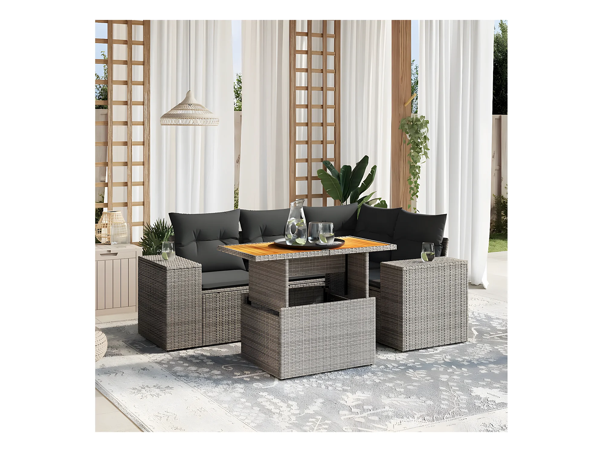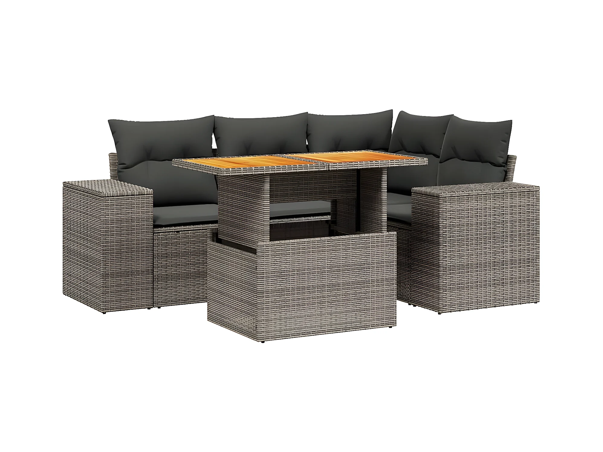 Salon de jardin 5 pièces avec coussins gris résine tressée