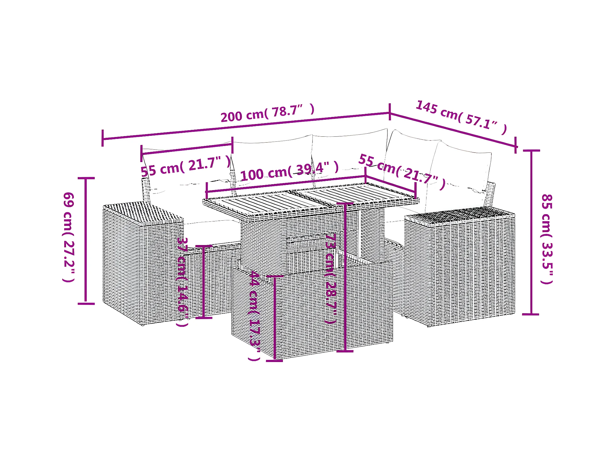 Salon complet de jardin Canapé 2 places et 2 fauteuils