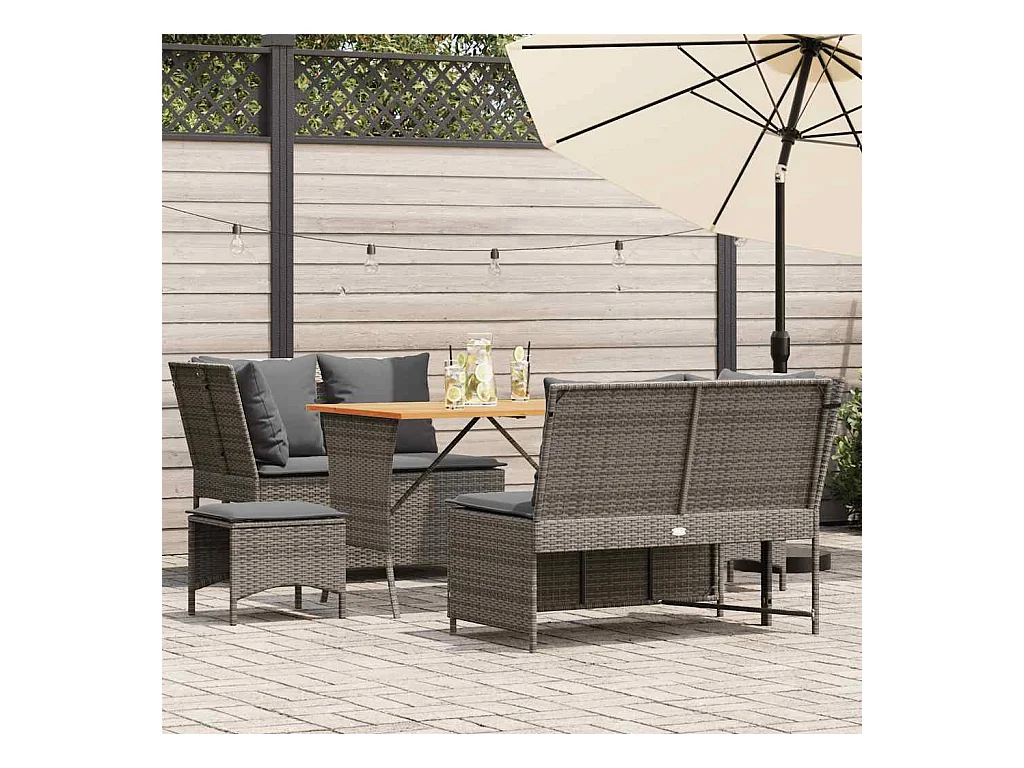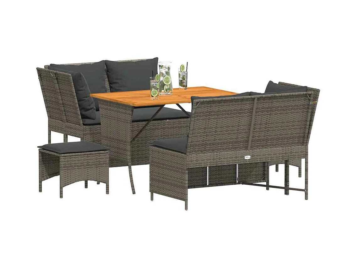 Salon de jardin 5 pièces avec coussins gris résine tressée