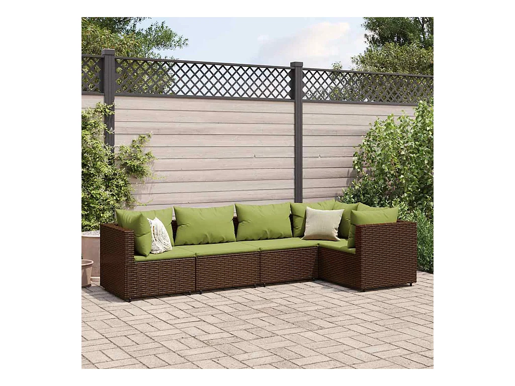 Salon de jardin 5 pièces avec coussins Marron Résine tressée