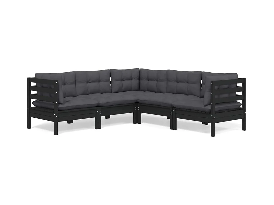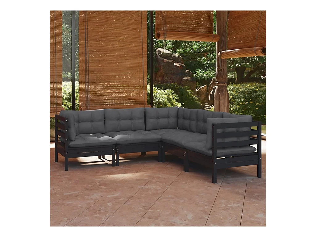 Salon de jardin 5 pièces avec coussins Noir Bois de pin