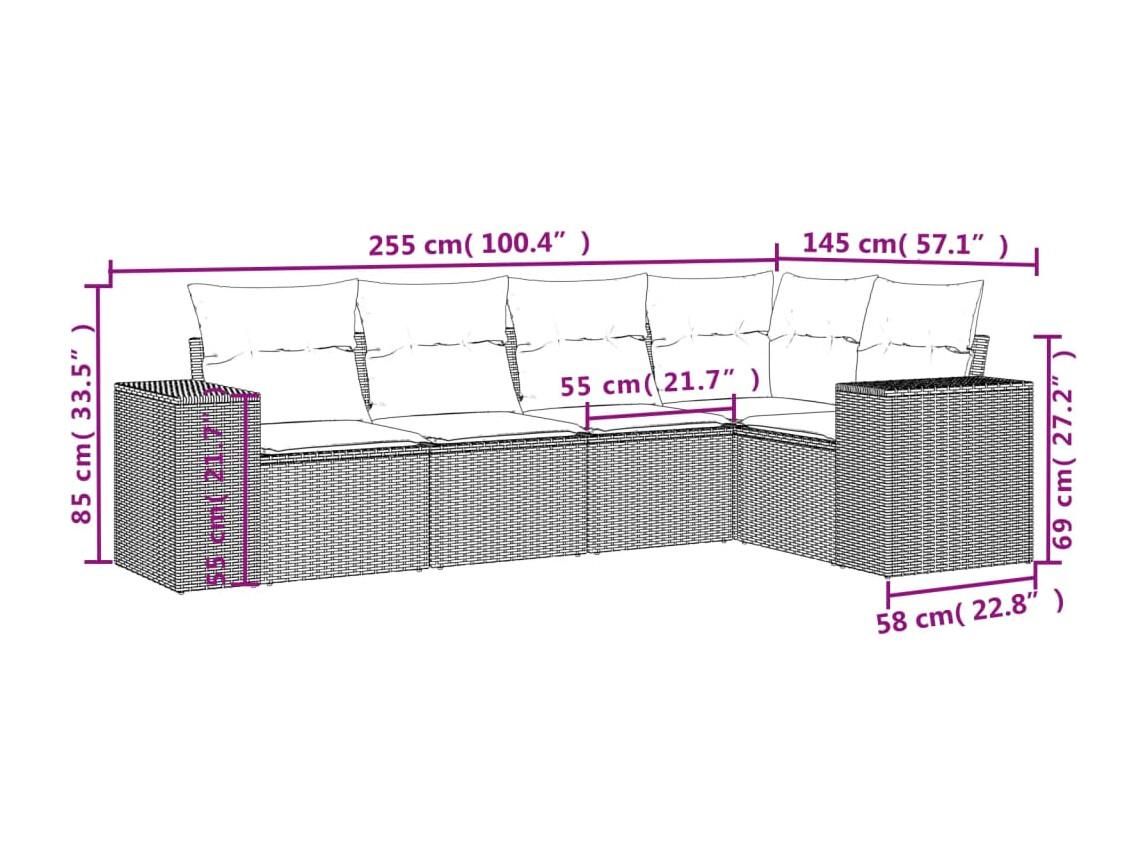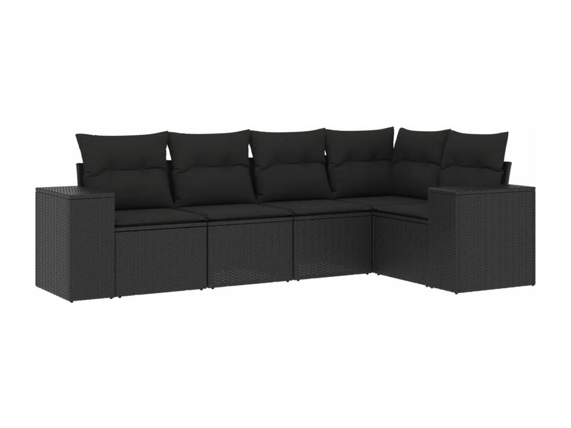 Salon de jardin 5 pièces avec coussins noir résine tressée