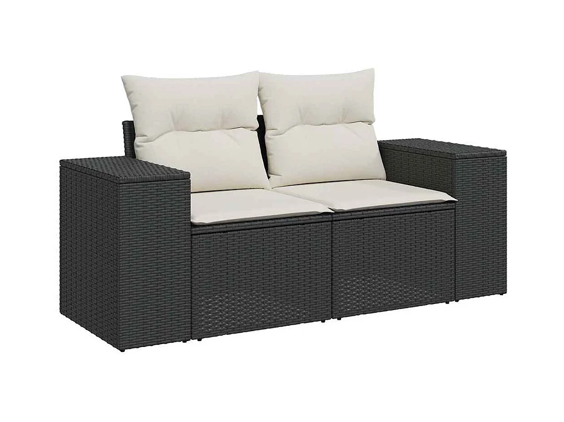 Salon de jardin 4 pièces avec coussins noir résine tressée