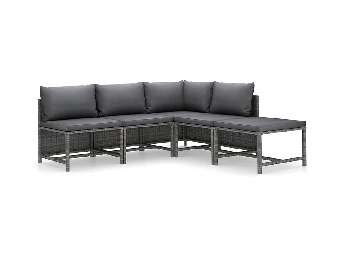 Salon de jardin 5 pièces avec coussins Résine tressée Gris