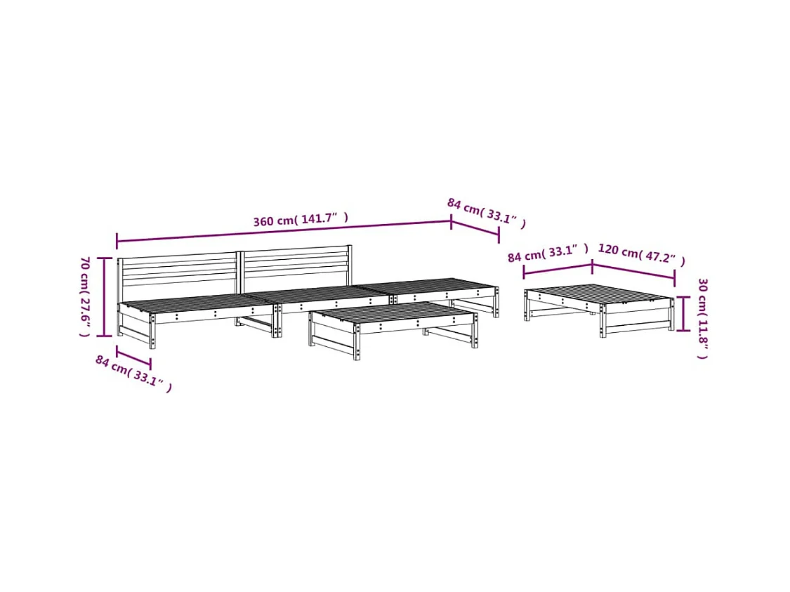 Salon de jardin 4 pcs bois de pin imprégné BE30457