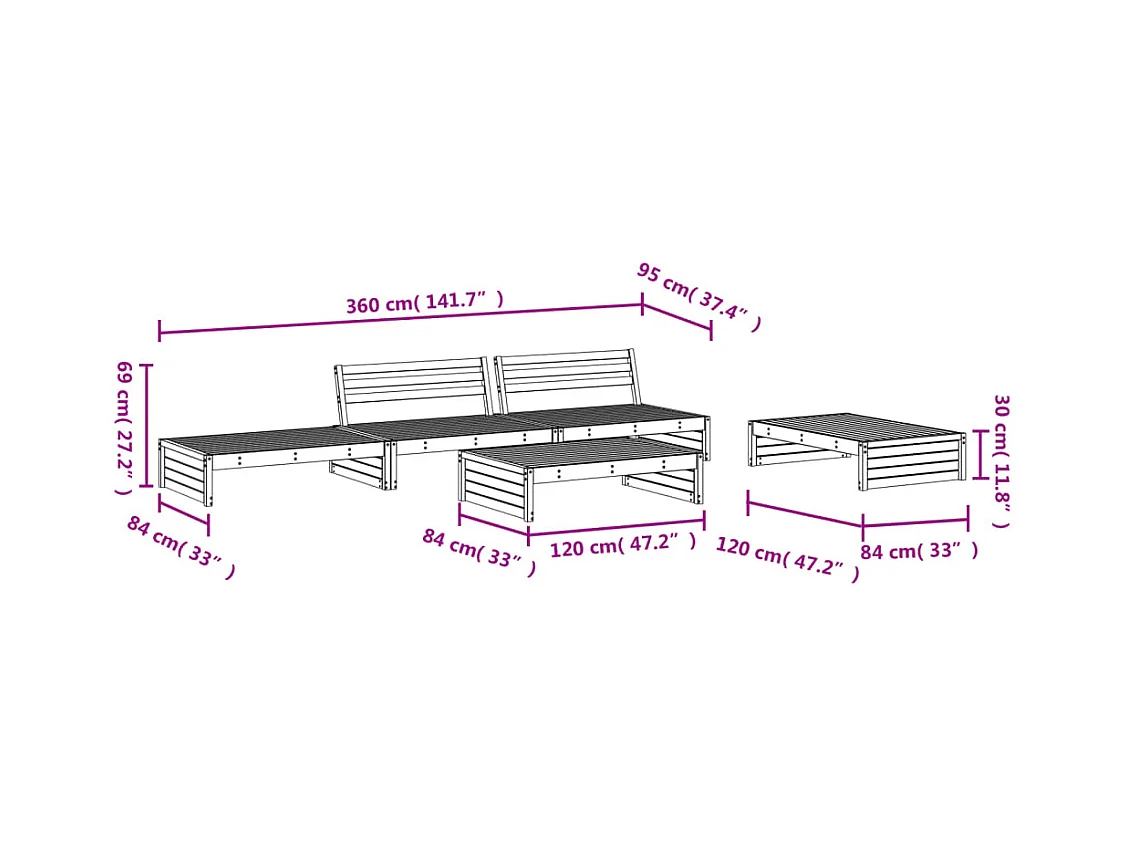 Salon de jardin 5 pcs bois de pin massif FR85975